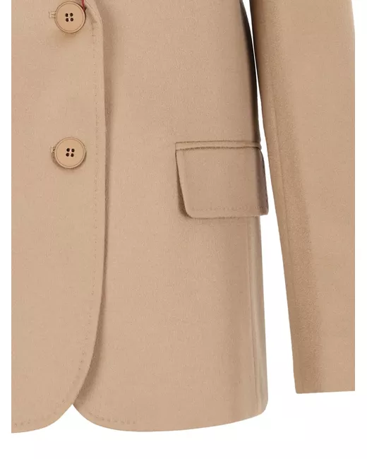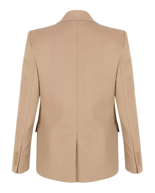 camel notched lapels front button fastening front flap pockets long sleeves straight hem