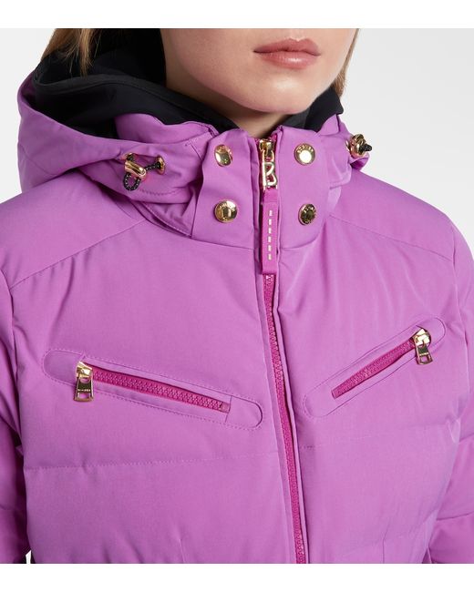 Material: 77% polyamide, 23% elastane. Care instructions: machine wash at 30 degrees. Made in Vietnam. Designer color name: 640. Item color: purple. Material II: 100% polyurethane. Material III: 94% polyester, 6% elastane. Closure: zipped front. Hardware color: gold. Pockets: zipped pockets. Cuff: elasticated. Detachable hood. Attached belt. Specifications: 4-way stretch, waterproof, water-repellent, moisture-wicking.