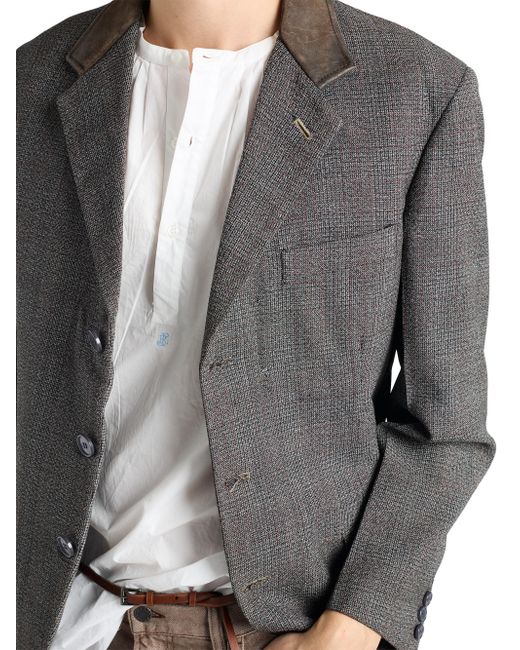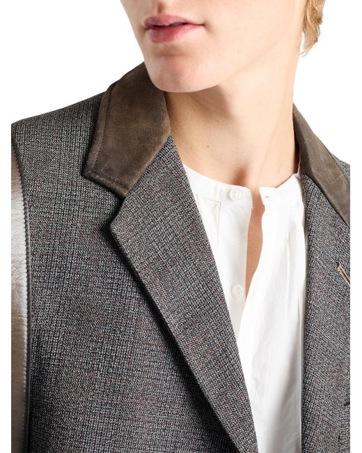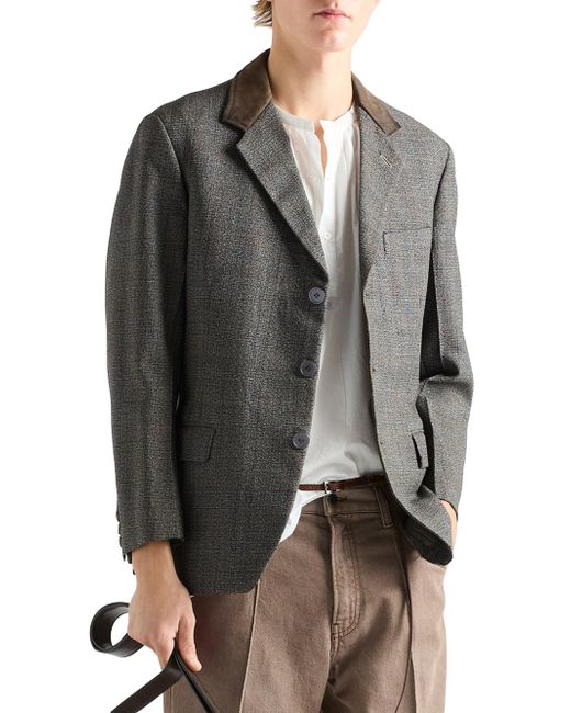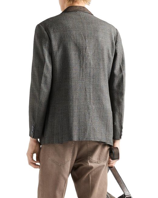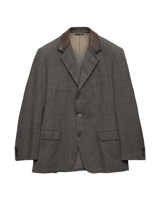 Classic fit Sartorial tailoring Notch lapel Center vent Three-button closure Two-button cuffs Flapped welt pockets Lined garment Fabric triangle logo on the back Leather collar Imported 100% Fleece Wool - 100% Calf Leather - 100% Trochus Niloticus. Lsd Rtw - Prada Rtw > Prada > Saks Fifth Avenue. Prada. Color: Grey. Size: 38.