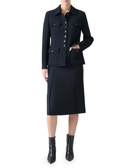 Crafted in Italy of virgin wool, this military jacket from Akris is styled with a spread collar and four button-through flap pockets. Spread collar Long sleeves Button-through flap patch pockets Button-front closure 100% virgin wool Dry clean Made in Italy SIZE & FIT Model measurements: 5'10" tall Model is wearing a US size 4. Advanced European - Akris > Akris > Saks Fifth Avenue. Akris. Color: Black. Size: 2.
