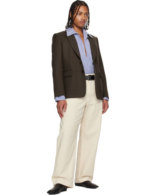Wool twill blazer. · Notched lapel · Single-breasted button closure · Welt pocket at chest · Flap pockets at waist · Padded shoulders · Surgeon's cuffs · Twin vents at back hem · Welt pockets at interior · Satin twill lining Supplier color: Mud