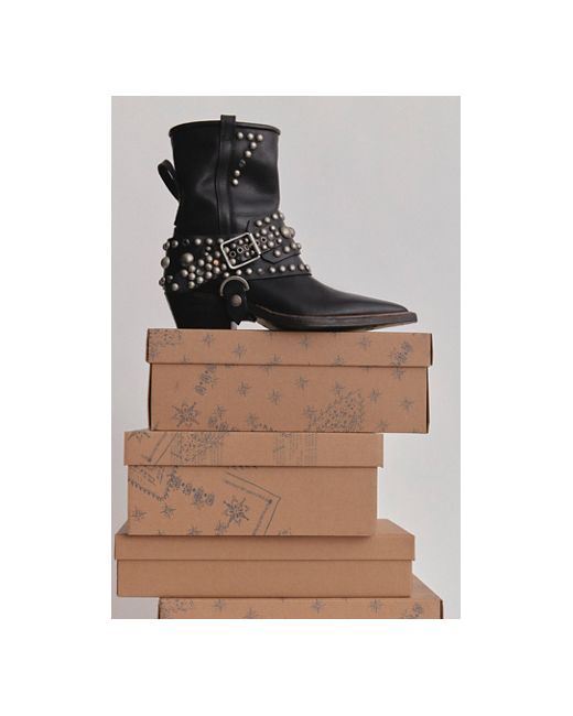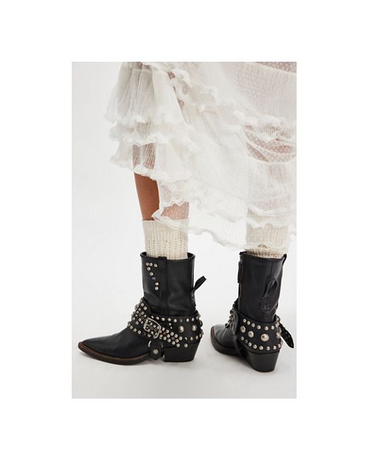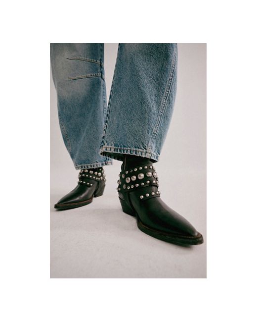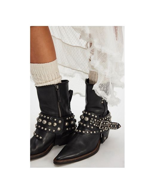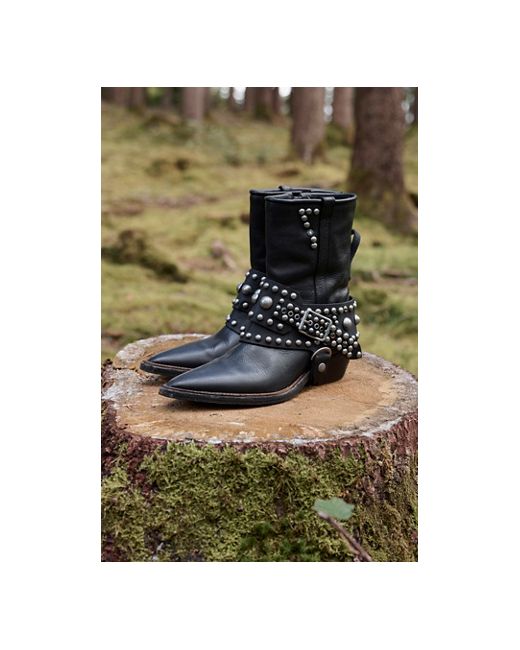 Effortlessly edgy from our We The Free collection, these rugged boots feature soft leather and metal embellishments with an adjustable buckle closure and western-inspired details. **Features:** Buttery soft leather, interior zipper closure, embellished harness detail, adjustable buckle, pointed toe, pull tabs at back of calf, slanted block heel, leather outsole **Why We ❤ It:** Perfect paired with your favorite jeans or a billowy skirt, these boots are ones you'll wear for years to come. **Note:** This pair features full-grain, vegetable-dyed leathers that will require a break-in period that can range from a few days to weeks, given the leather's thickness. We recommend wearing them for short periods of time with medium-weight socks to help your pair mold to your feet. Made to last, with a focus on timelessness and top-quality materials, this pair will age beautifully over time. We The Free Axel Boots at Free People in Black, Size: US 8