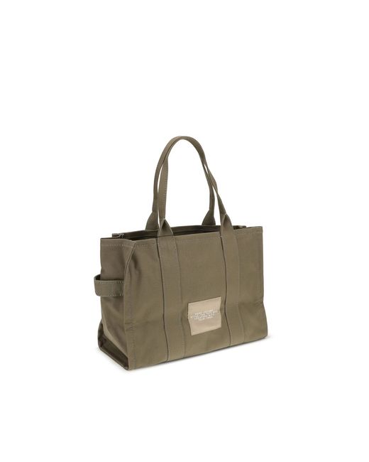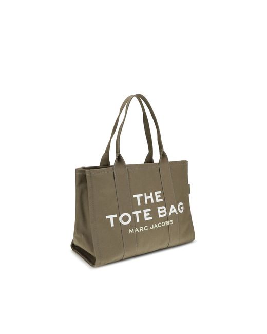 The cotton The Large Tote Handbag by Marc Jacobs, two rigid tubular top handles, top zipper closure, single interior pocket, adjustable and removable flat shoulder strap, contrasting jacquard print iconic brand monogram on front, contrasting patch with iconic brand monogram applied on back. Season: SS26 Dimension: 34x34x16 Composition: GENERAL 100% Cotton MADE IN VIETNAM