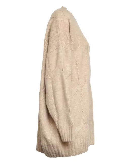light brown cable knit round neck long sleeves ribbed hem ribbed cuffs