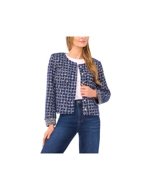 Refined and versatile, this CeCe jacket brings effortless polish to any outfit. The collarless crew neckline creates a sleek, modern silhouette. Two functional front pockets add both style and convenience. About The Brand: CeCe is a contemporary lifestyle brand inspired by a romantic take on the everyday, punctuated by taste, wit, and on-the-go flair.