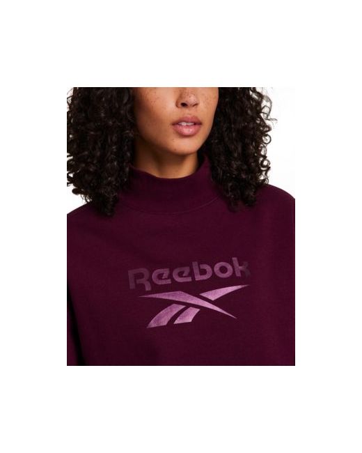 Stay cozy and stylish with this Reebok mock neck sweatshirt, featuring a cropped silhouette and long sleeves with ribbed-knit cuffs. A tonal Vector graphic at the chest offers a sleek and sporty detail.