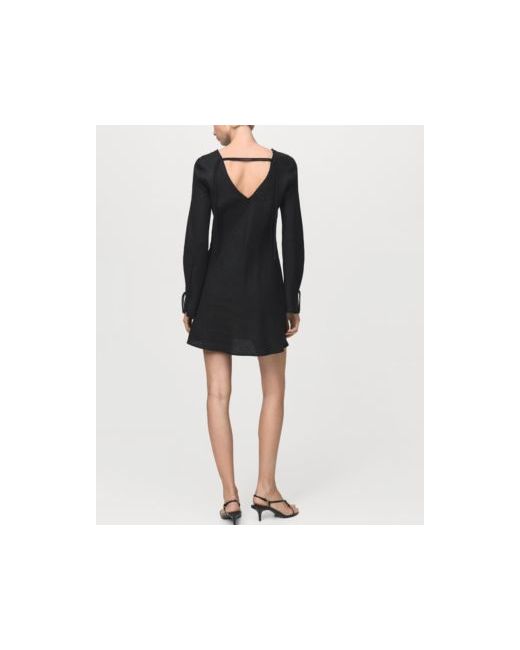Designed for ease, the Linen Dress With Back Opening from Mango delivers refined style. Made from linen mix fabric, this short dress features A-line design, a round neck, long sleeves with slit cuffs and a back slit.
