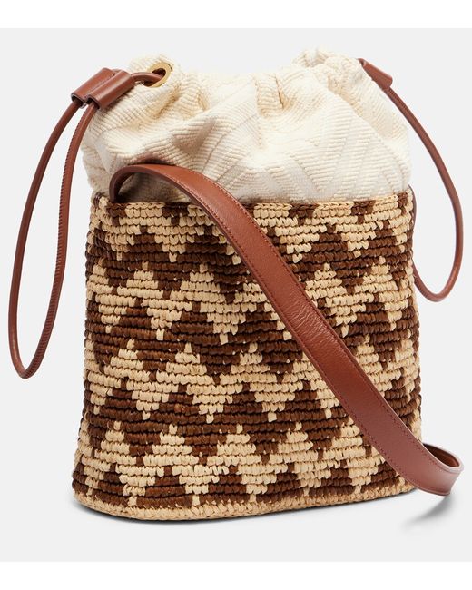 Drawstring Medium Raffia Bucket Bag Rrp440