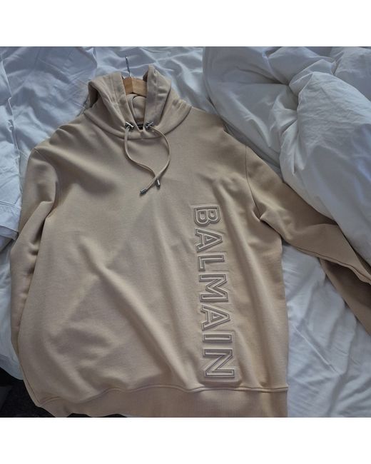 This Balmain hoodie in size XL is a new, unworn item without tags. Made for men, it is a beige pullover style with a hood. Perfect for casual wear, it falls under categories such as Hoodies & Sweatshirts and Activewear in Men's Clothing and can be found in Clothes, Shoes & Accessories.slight nick on the collar hence the price paid 850 for this and only ever tried it on