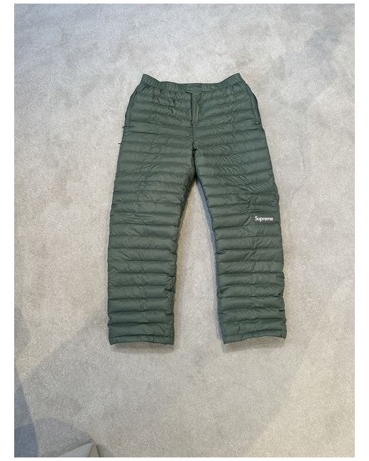 Elevate your winter wardrobe with these stylish Supreme Puffer Trousers. Crafted with high-quality nylon, these trousers are designed to keep you comfortable and warm during the chilly season. Available in a vibrant green colour, these trousers are perfect for men who want to make a fashion statement. These regular-sized puffer trousers feature a supreme brand logo, making them a must-have for any fashion-forward man. Ideal for a casual day out or a night out with friends, these trousers are perfect to pair with a stylish jacket or coat. Get ready to turn heads with these trendy Supreme Puffer Trousers.