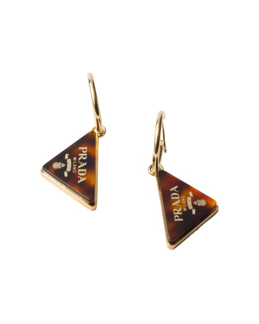 For pierced ears Metal lettering logo Imported 100% methacrylate - 100% brass SIZE & FIT 2.05W x 5.08H. Lsd Rtw - Prada Rtw > Prada > Saks Fifth Avenue. Prada. Color: Beige Khaki.