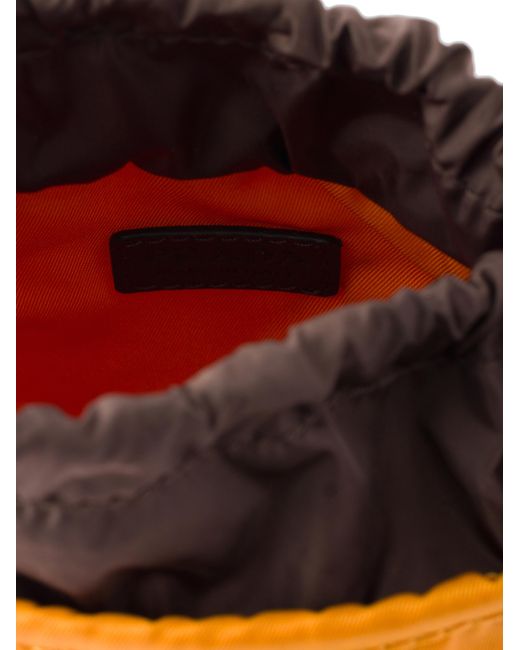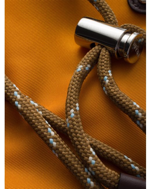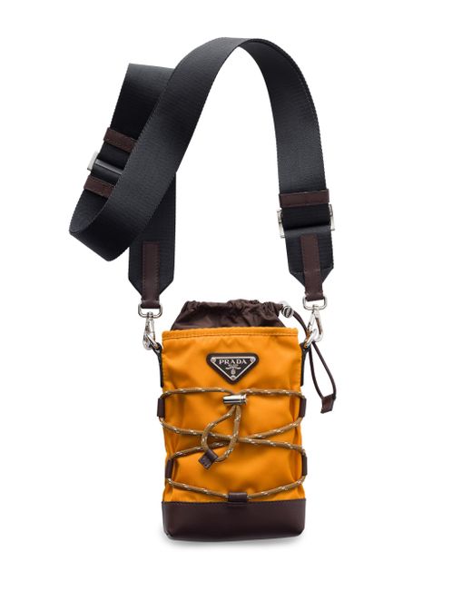 Drawstring closure Enameled metal triangle logo Adjustable, detachable woven nylon tape shoulder strap Imported 100% Polyamide - 100% Calf Leather - 100% Solventfree Resin Pu 13 W x 18 H / 5.1'' x 7''. Lsd Rtw - Prada Rtw > Prada > Saks Fifth Avenue. Prada. Color: Orange.