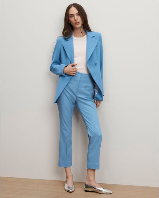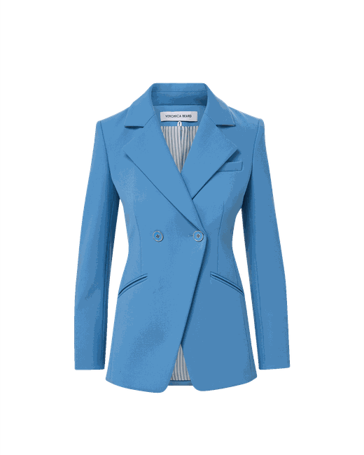 Timeless tailoring in eye-catching blue. Expertly crafted from a premium stretch-suiting blend, the Amos dickey jacket features a split hem and precise darting along the bodice for a slim, waist-defining fit. A notch lapel, welt pockets, and double-breasted front with a sleek two-button closure complete the design. Pair with the coordinating Kean pant and your favorite dickey for a classic VB look.63% Polyester, 34% Viscose, 3% ElastaneLinings: 100% Polyester, 95% Polyester, 5% ElastaneMade in the USADry clean onlyStyle #2512SU11311456