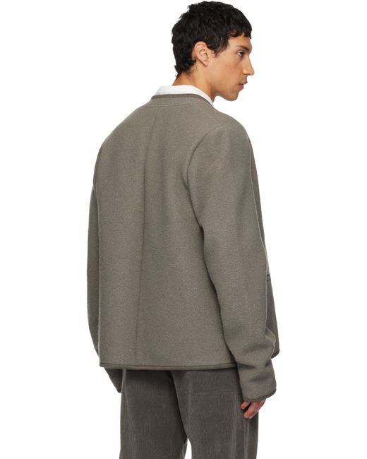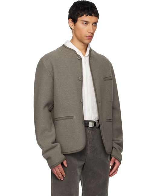 Lightweight felted wool jacket. · Stand collar · Button closure · Welt pockets at front · Patch pocket at interior · Unlined · Corozo hardware Supplier color: Camoscio felted