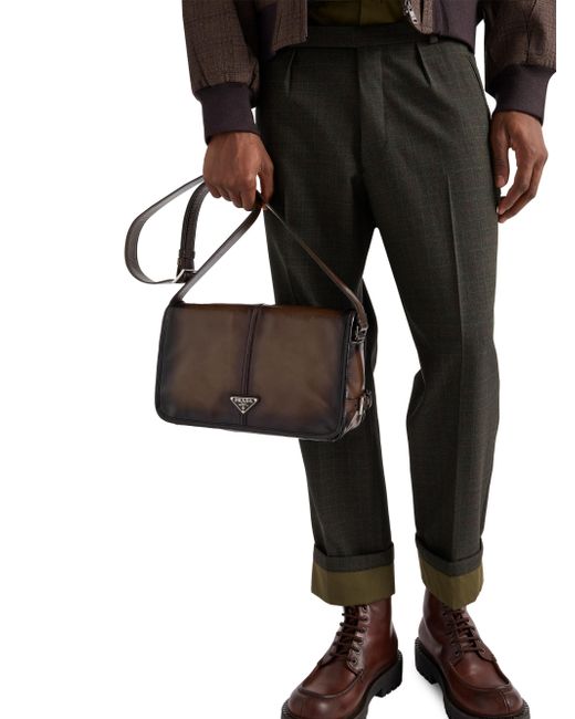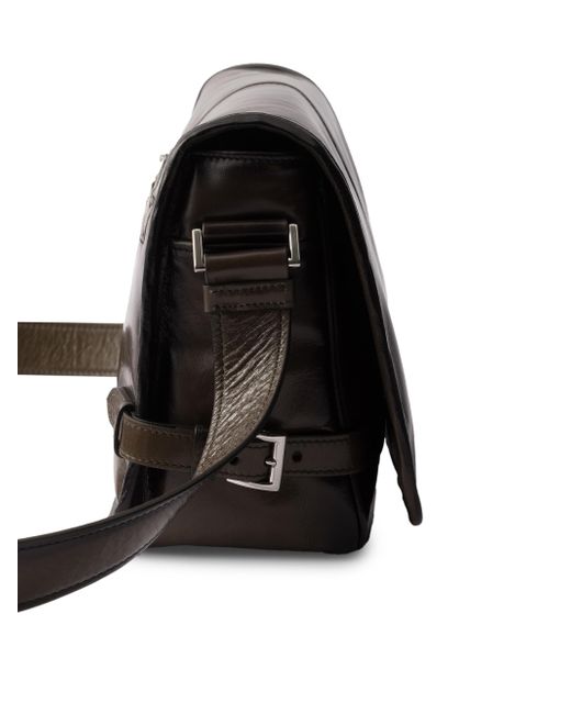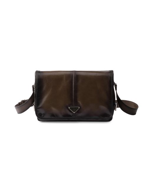 Decorative straps with buckles Adjustable leather shoulder strap. Maximum length 120 cm - Minimum length 80 cm - Maximum drop 52 cm - Minimum drop 30 cm Enameled metal triangle logo on the flap Flap closure with magnet Ring for trick attachment on shoulder strap Back zipper pocket Interior with zipper pocket Logo print Re-Nylon lining Antiqued finish Imported 100% Calf Leather 30W x 20H x 11L cm / 11.8W x 7.8H x 4.3L in. Lsd Rtw - Prada Rtw > Prada > Saks Fifth Avenue. Prada. Color: Brown.