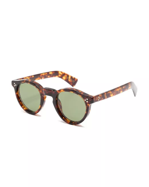 brown round frame green tinted-lenses tortoiseshell pattern These glasses come with a protective case.