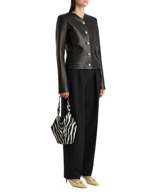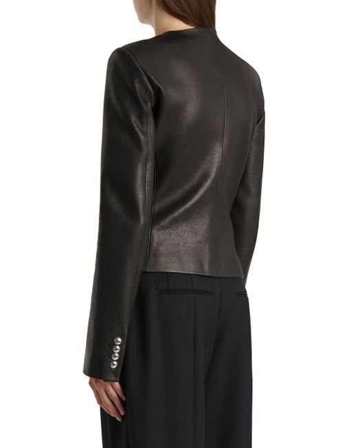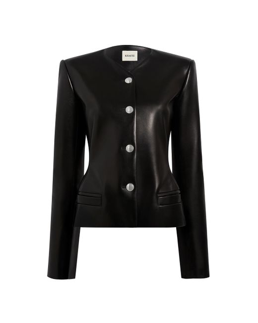 Crafted of leather, the Nara jacket from Khaite flaunts a sleek silhouette with a V-neck and side welt pockets. V-neck Long sleeves Side welt pockets Button-front closure 100% leather Dry clean Made in USA SIZE & FIT Model measurements: 5'10" tall Model is wearing US size 4. Designer Lifestyle - Khaite > Khaite > Saks Fifth Avenue. Khaite. Color: Black. Size: 2.