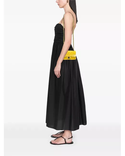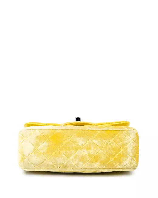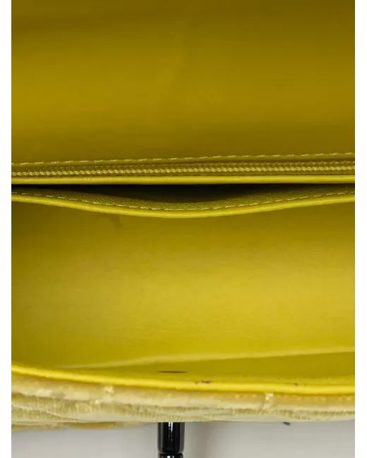 velvet body velvet woven chain link shoulder strap front flap with turn lock closure exterior back slip pocket interior zip and slip pockets yellow Serial Number: 20191432 Inclusions: authenticity card. Condition: EXCELLENT. This previously owned item is in near-perfect condition with no signs of damage or use. Please refer to the photos on this product page for a detailed view of the item, including any damages declared.