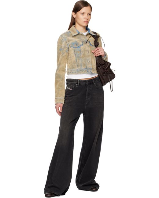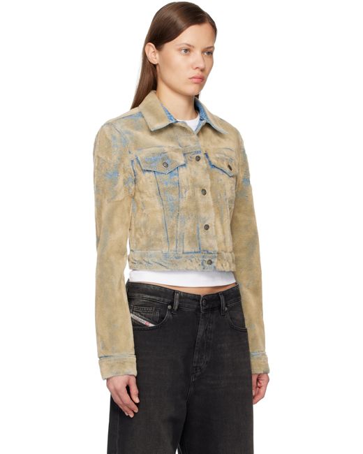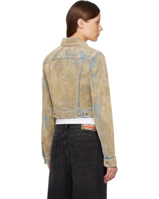 Non-stretch denim jacket. · Flocked detailing throughout · Spread collar · Logo-engraved button closure · Flap pockets at chest · Cropped hem · Buttoned barrel cuffs · Adjustable button tabs at back hem Supplier color: Blue/Beige
