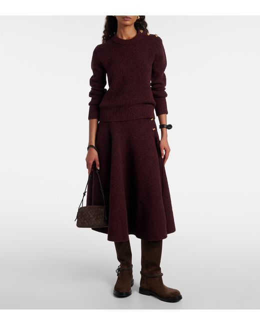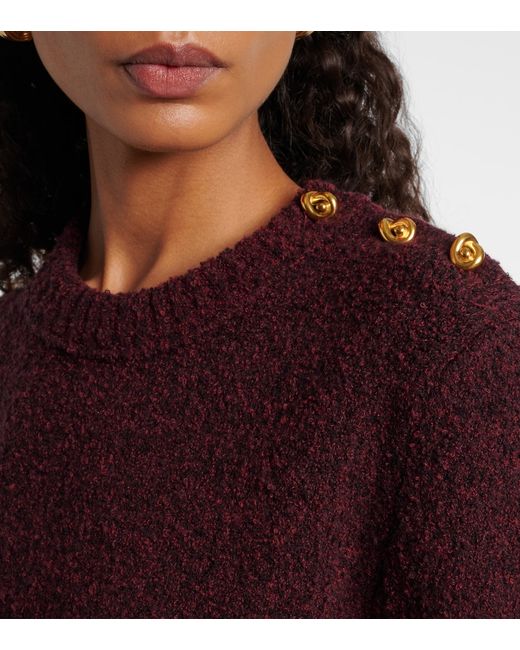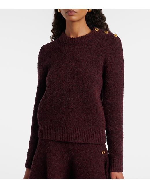 Materiale: 49% cotone, 41% lana, 9% poliammide, 1% elastan. Trattamento: lavaggio a secco. Made in Italy. Colore del designer: Oxblood Melange. Colore dell'articolo: burgundy. Colore del metallo: oro. Dettagli: 100% metallo. Chiusura: abbottonatura sulla spalla. Cotone, Lana. Polsini: a coste. Orlo: a coste.