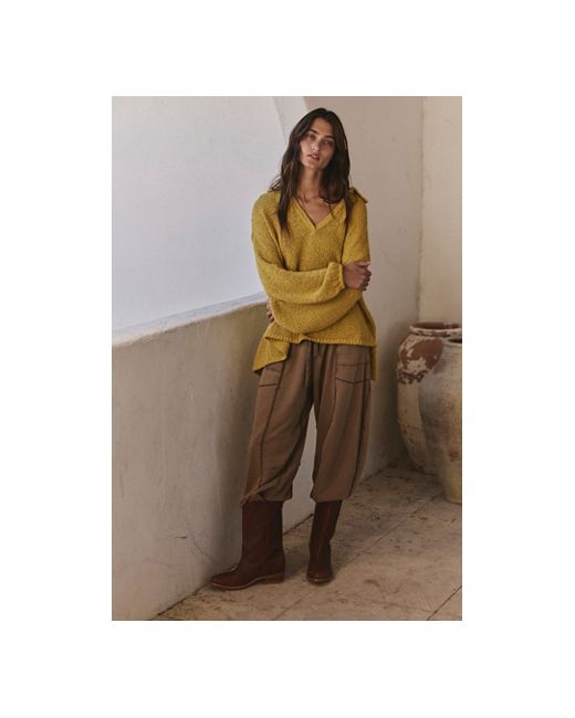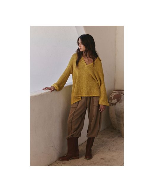 Add an effortlessly cozy layer to your look with this pullover from free-est, featured in the perfect oversized style with collared neckline and bubbled sleeves. * V-neckline with collar * Cotton blend knit * Slouchy style * Flowy hem Ren Sweater Pullover by free-est at Free People in Golden Palm, Size: Small