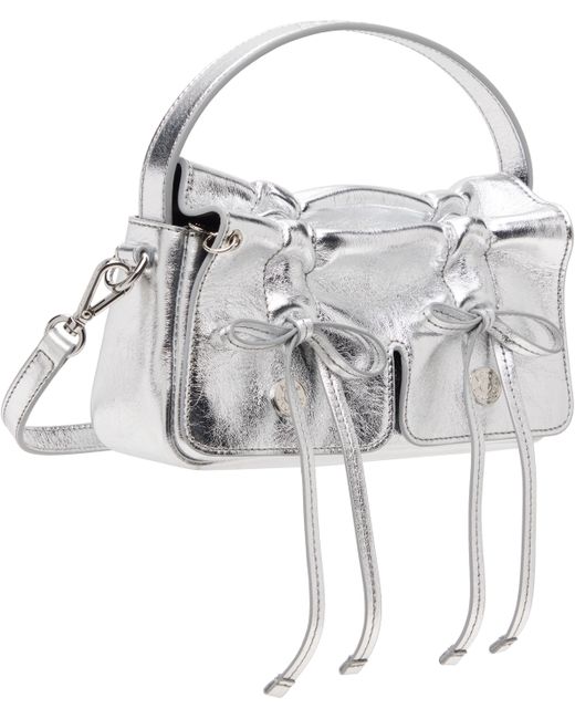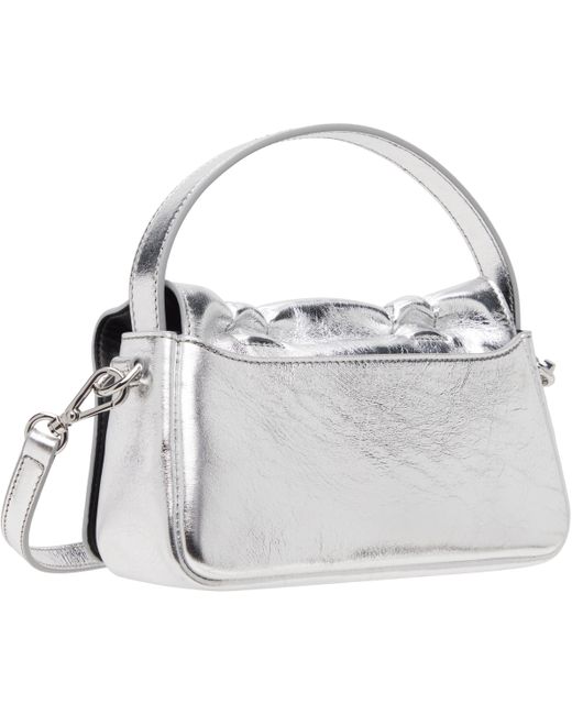 LWG-certified crackled calfskin top handle bag. · Logo embossed at adjustable shoulder strap · Detachable crossbody strap · Logo charm and drawstrings at face · Patch pocket at back face · Magnetic flap · Card slot at interior · Buffed faux-leather lining · H4 x W8.5 x D2.5 Supplier color: Silver