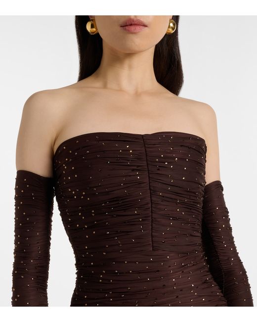 Materiale: 87% poliammide, 13% elastan. Trattamento: lavaggio a secco. Made in Australia. Colore del designer: Brown With Bronze Crystals. Colore dell'articolo: marrone. Stecche. Struttura interna a bustier. Chiusura: zip posteriore nascosta. Maniche rimovibili. Spacco.