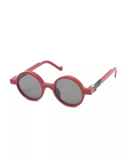 red round frame tinted lenses nose pads straight temples temple tip detail These glasses come with a protective case.