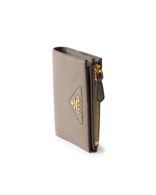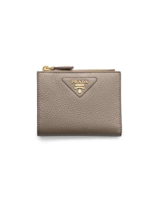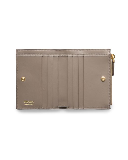 Snap closure Metal lettering logo One bill compartment Six card slots Two internal pockets Internal zipper coin compartment Moiré and leather lining Imported 100% Calf Leather 11.5 cm W x 8.5 cm H / 4.5'' W x 3.3'' H. Lsd Handbags - Prada Handbags Access > Prada > Saks Fifth Avenue. Prada. Color: Grey.