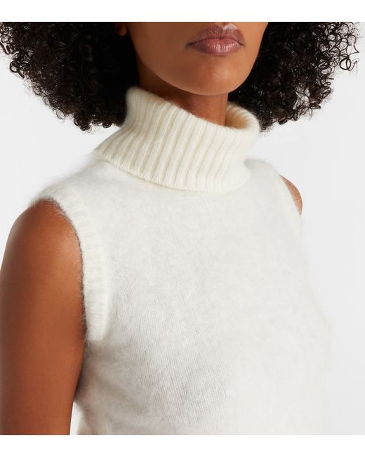 Materiale: 100% cashmere. Trattamento: lavaggio a secco. Made in China. Colore del designer: Ivory. Colore dell'articolo: bianco. Orlo: a coste. Collo: collo alto. Maniche: corte. Cashmere.