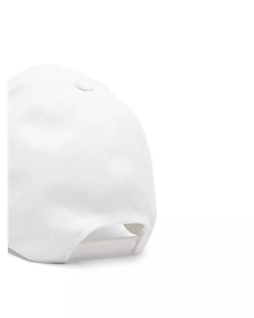 Bianco ottico, cuciture tono su tono, bottone rivestito in tessuto sulla corona, fascia con fibbia posteriore regolabile e tesa curva.