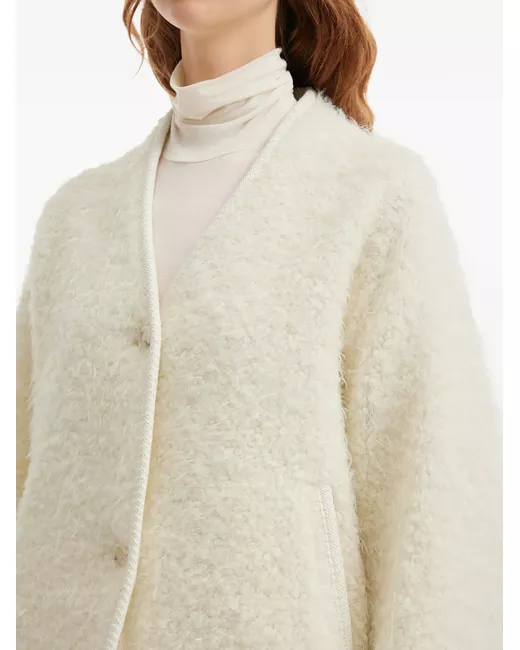 ivory alpaca wool blend V-neck front button fastening front patch pockets long sleeves