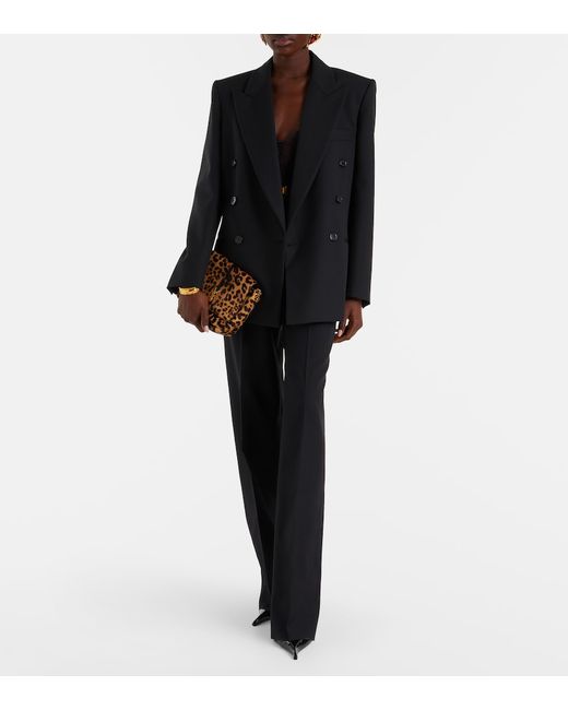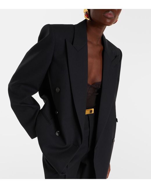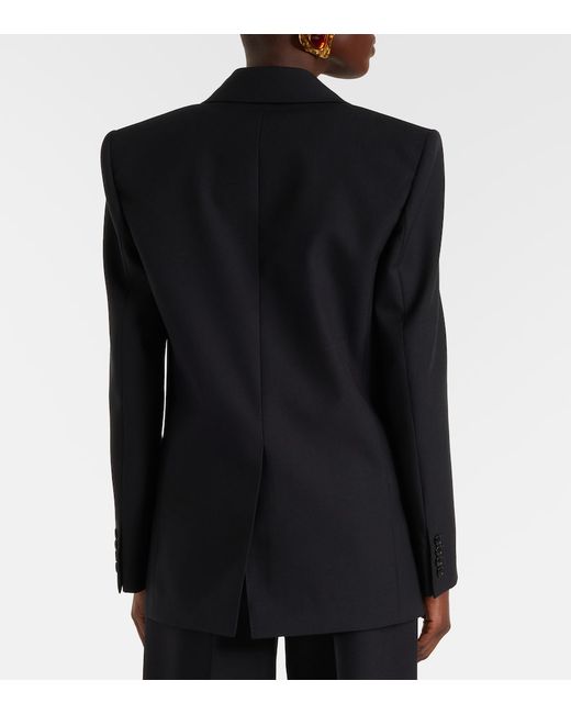 Material: 100% wool. Care instructions: dry clean. Made in Italy. Designer color name: Noir. Item color: black. Lining: 100% silk. Contains non-textile parts of animal origin. Peak lapel. Closure: double-breasted (six buttons). Shoulder pads. Cuff: four buttons. Pockets: jetted, angled chest pocket, internal pockets. Vent: single. Wool.