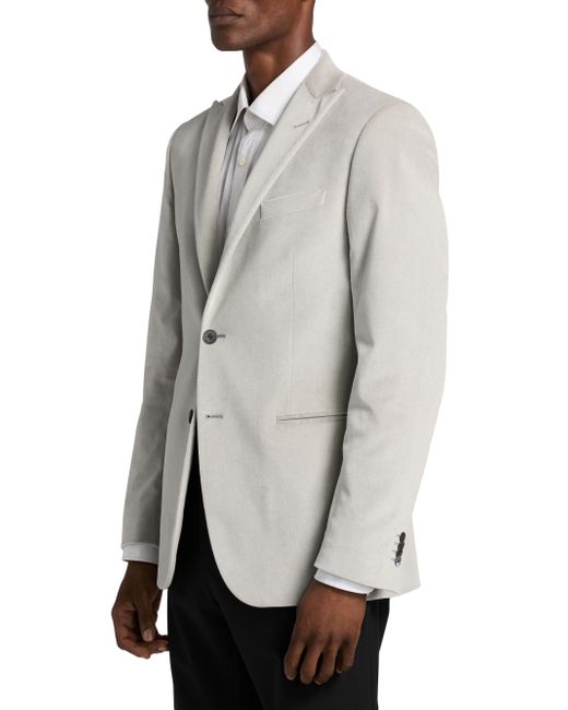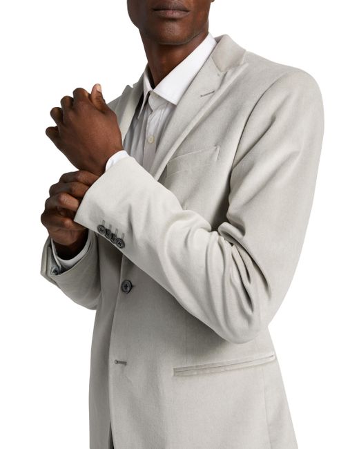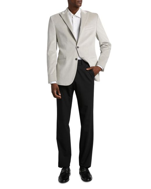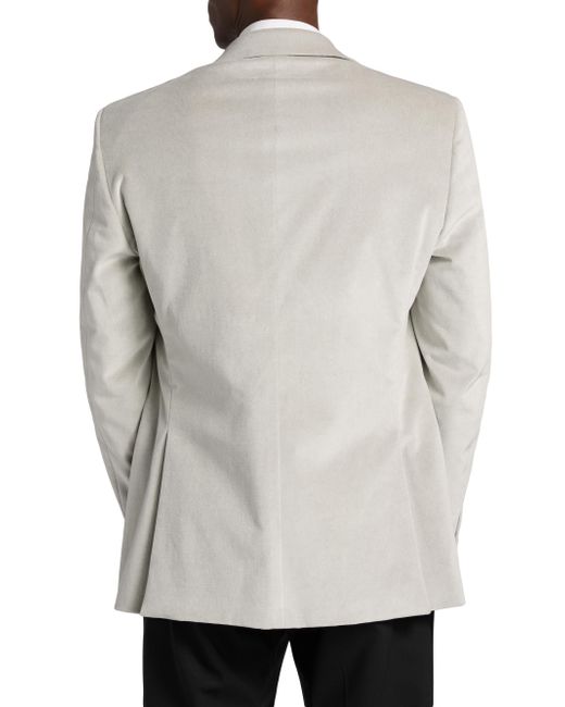 Crafted of stretch cotton velvet, this Corneliani jacket features peak lapels, long sleeves with four-button cuffs, and side welt pockets. A single-breasted two-button closure finishes the style. Peak lapels Long sleeves, four-button cuffs Chest and side welt pockets Button-front closure 98% cotton/2% elastane Dry clean Made in Italy SIZE & FIT About 30" from shoulder to hem Model measurements: 6'2" tall, 40" chest, 31" waist Model is wearing a US size 40R. Men Luxury Coll - Corneliani Clothing > Corneliani > Saks Fifth Avenue. Corneliani. Color: Silver. Size: 40.