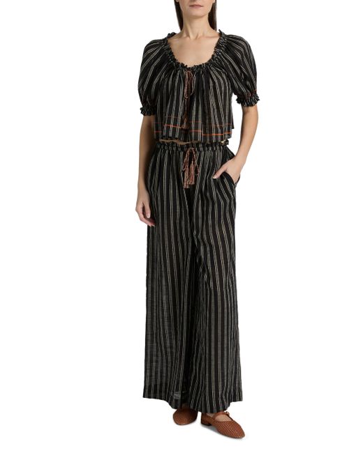 Crafted of striped cotton, these Ulla Johnson straight-leg pants are styled with a drawstring waistband detailed with tassels, and side slip pockets. Drawstring waistband Side slip pockets 100% cotton Hand wash Imported SIZE & FIT Rise: about 11.75" Inseam: about 29.5" Model measurements: 5'10" tall Model is wearing a US size Small ABOUT THE BRAND Manhattan-based designer Ulla Johnson credits her archaeologist parents as inspiration for her namesake ready-to-wear label, founded in 1998. Natural fibers, easy fits and meticulous finishes are seen in each collection, which incorporate sweeping silhouettes, and printing and dyeing techniques from around the world. Outerwear And Swimwear - Contemporary Swim > Ulla Johnson > Saks Fifth Avenue. Ulla Johnson. Color: Noir Stripe. Size: Small.
