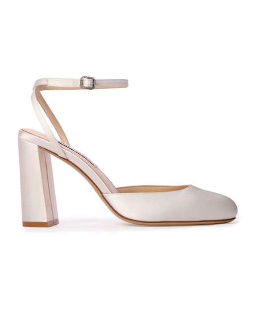 Round toe sandal, set on a classic 90mm block heel. Featuring a square crystal-embellished buckle. Made with smooth satin. Heel Height: 90 mm / 3.55 inches Upper: Satin Sock: Leather Lining: Leather Sole: Leather. Lsd Shoes - Shoes Lsd Mp > Anne Barge > Saks Fifth Avenue. Anne Barge. Color: White Satin. Size: 6.