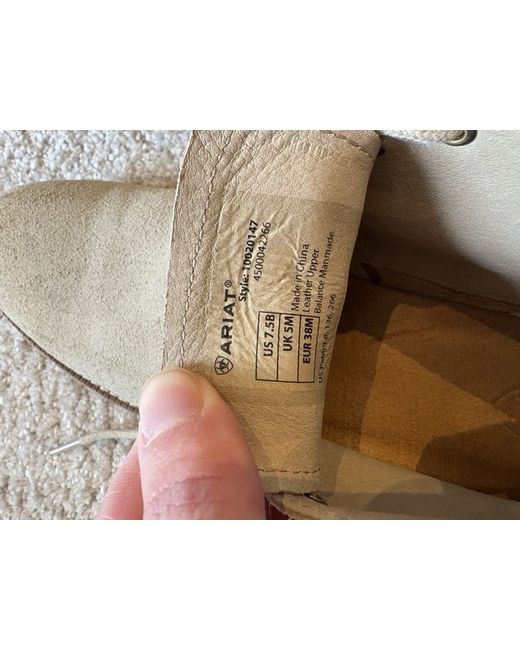 These Women's Ariat Desert Boots in size 5 are a stylish and comfortable ankle boot perfect for everyday wear. With an almond toe shape and low block heel, these beige boots feature a suede upper and leather outsole for durability and quality. The Western theme adds a touch of flair to the standard shoe width, making them a versatile and fashionable choice for any wardrobe.
