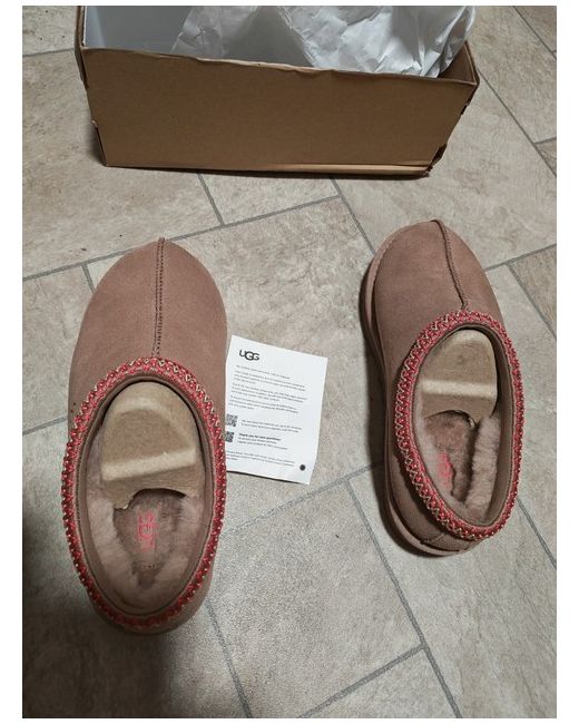 These Brown Uggs Tazz Chestnut women's size 6 slip-on slippers by UGG Australia are perfect for casual occasions during the winter season. With a round toe shape, low heel height, and comfortable features, these suede slippers are both stylish and practical. The chestnut brown colour adds a touch of warmth to your outfit, while the logo accents give a subtle hint of brand recognition. Ideal for relaxing at home or running errands, these slip-on slippers are a must-have for any woman looking for comfort and style in their footwear.