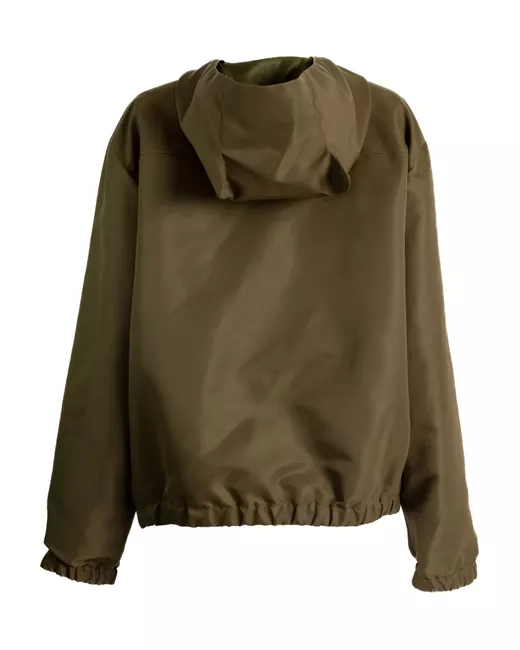 green logo-patch zip-fastening drawstring hood zip-pockets