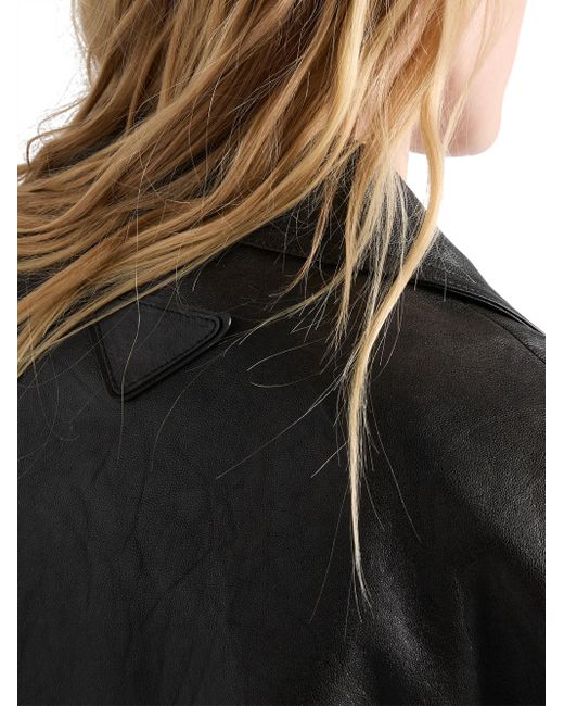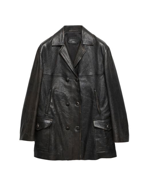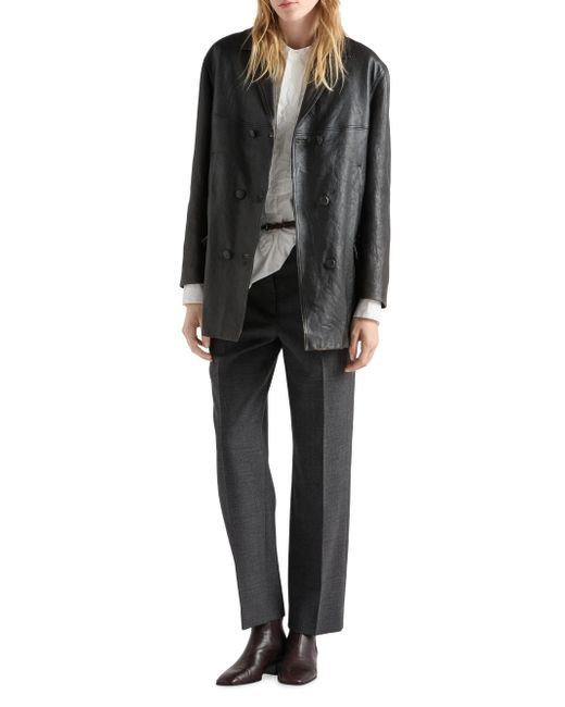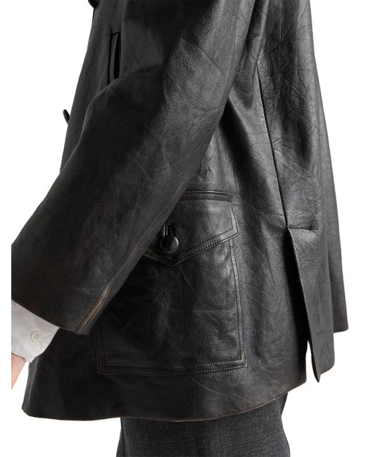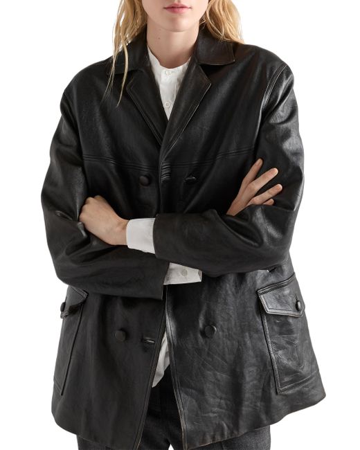 Lined Regular fit Center button closure Back vents Classic lapels Straight sleeves Welt and patch pockets Leather triangle logo on center back Vintage treatment Imported 100% lamb leather. Lsd Rtw - Prada Rtw > Prada > Saks Fifth Avenue. Prada. Color: Black. Size: 0.