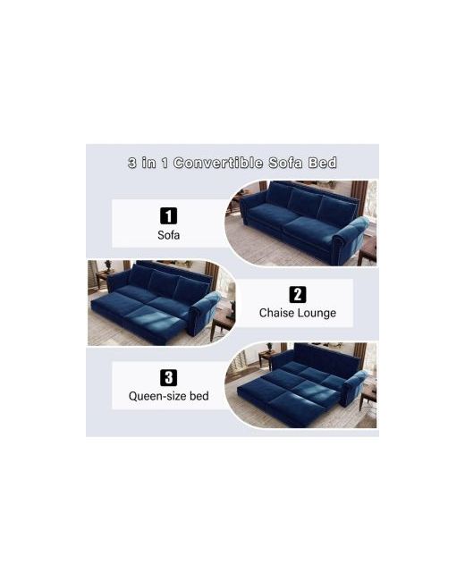 Upgrade your space with this 93.7 3-in-1 convertible velvet sofa bed. Effortlessly switch between a stylish 3-seater couch, a cozy chaise lounge, or a spacious king-size sleeper. Upholstered in soft velvet with elegant nailhead trim and rolled arms, it blends traditional design with modern functionality. The adjustable configuration fits any room-from living rooms to guest bedrooms. Built with a sturdy steel frame and plush foam cushions, it offers lasting comfort and support. Perfect for family movie nights, hosting guests, or everyday lounging.
