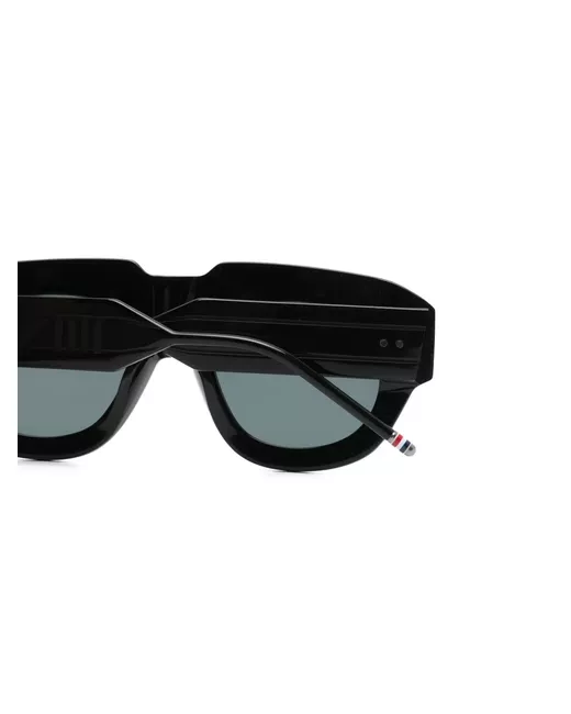 black round frame tinted lenses temple tips striped-detail These glasses come with a protective case.