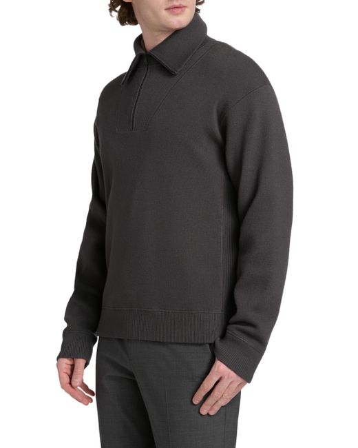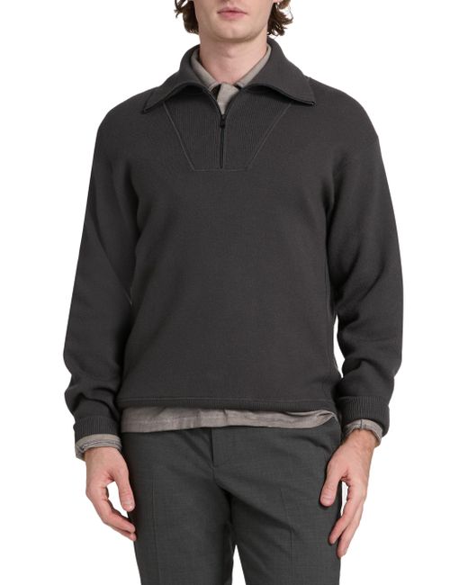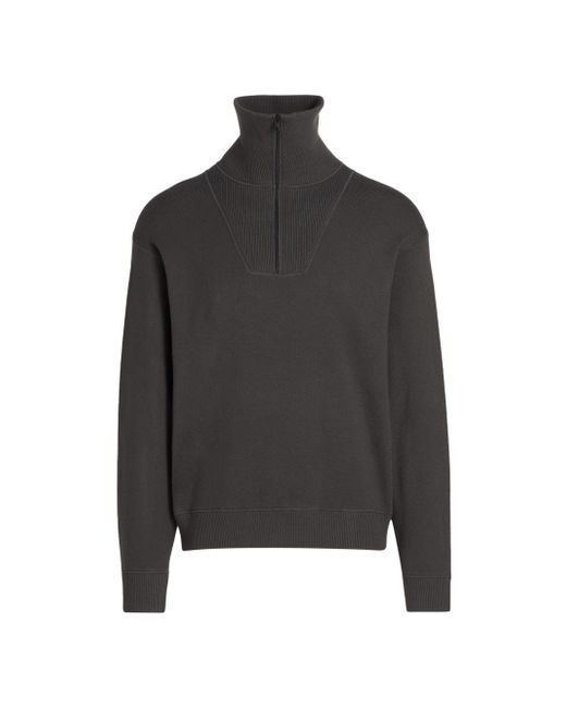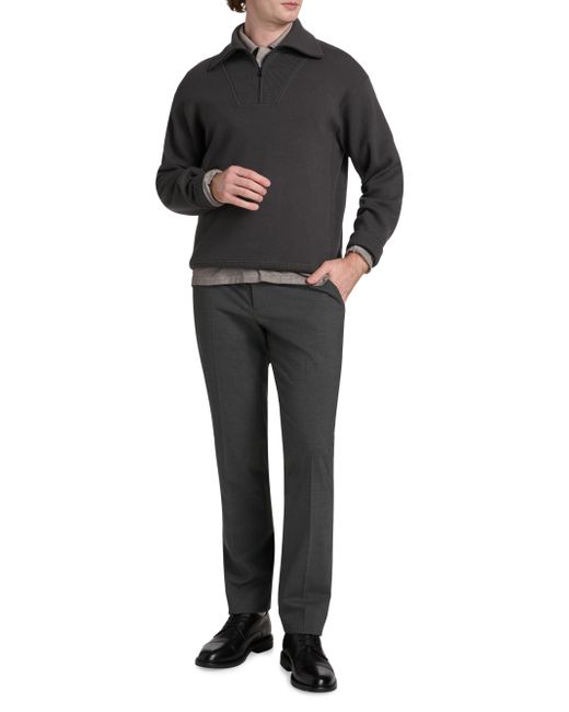 This half-zip pullover from Theory is crafted of merino wool, featuring a drop-shoulder relaxed fit. Ribbed detailing at the turtleneck and a zipped front completes the look. Turtleneck Drop shoulders Long sleeves Front zip closure 100% merino wool Dry clean Imported SIZE & FIT Model measurements: 6'2" tall, 40" chest Model is wearing a US size Medium ABOUT THE BRAND For two decades, Theory has nailed the art of polished dressing through its well-tailored pieces. Innovative fabrications and an elevated, minimalist aesthetic make the brand's separates a wardrobe main story season after season. Mens Modern Coll & Outer - Theory > Theory > Saks Fifth Avenue. Theory. Color: Dark Grey Melange. Size: Small.