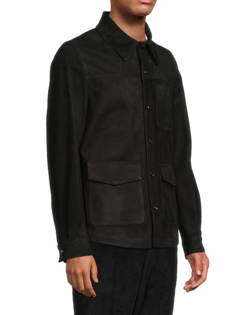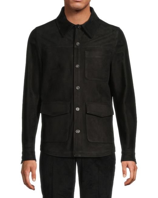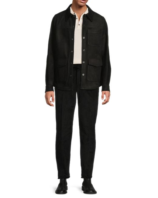 This Isaia overshirt is crafted of supple suede for a luxurious feel and look. A point collar, chest and side patch pockets, and a button-front closure lend elevated structure to this style. Point collar Long sleeves, button barrel cuffs Chest patch pockets Side flap-patch pockets Button-front closure Suede Dry clean Made in Italy SIZE & FIT Model measurements: 6'2" tall, 40" chest, 31" waist Model is wearing a US size 40 ABOUT THE BRAND Since its founding in 1920, Isaia has been among the storied tailoring houses based in Naples, Italy. The family business began as a fabric purveyor, and more than a century later, Isaia is renowned for its signature unstructured jackets that perfectly embody the Neapolitan ethos of easy luxury. Men Luxury Coll - Isaia > Isaia > Saks Fifth Avenue. Isaia. Color: Black. Size: 40.