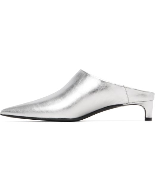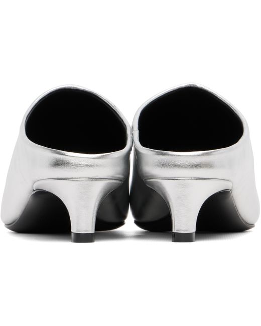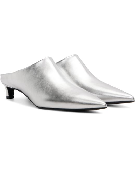 Laminated leather slip-on heels. · Pointed toe · Buffed leather lining · Kitten heel with rubber injection · Leather sole · Heel: H1.5 Supplier color: Sky grey