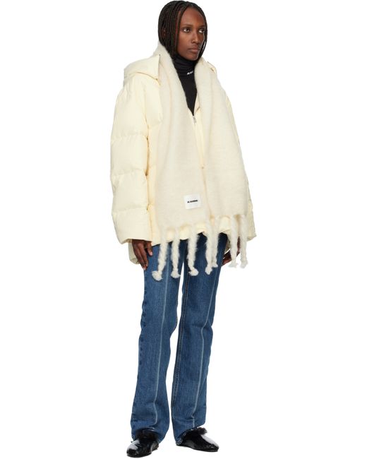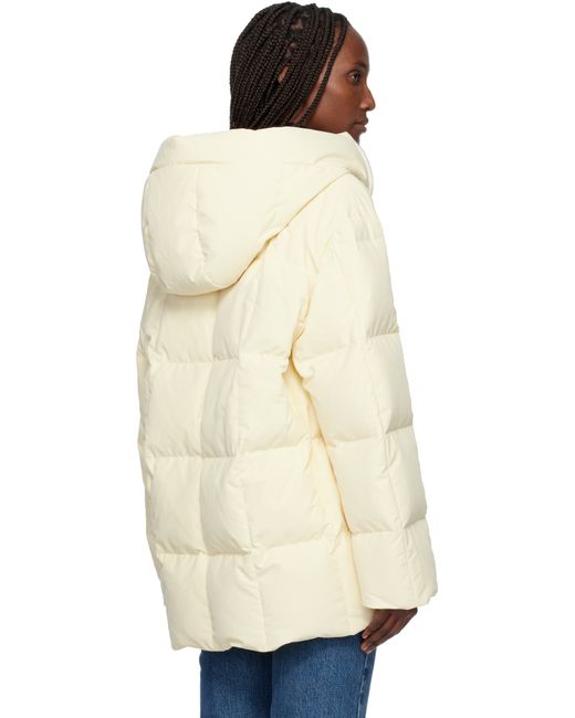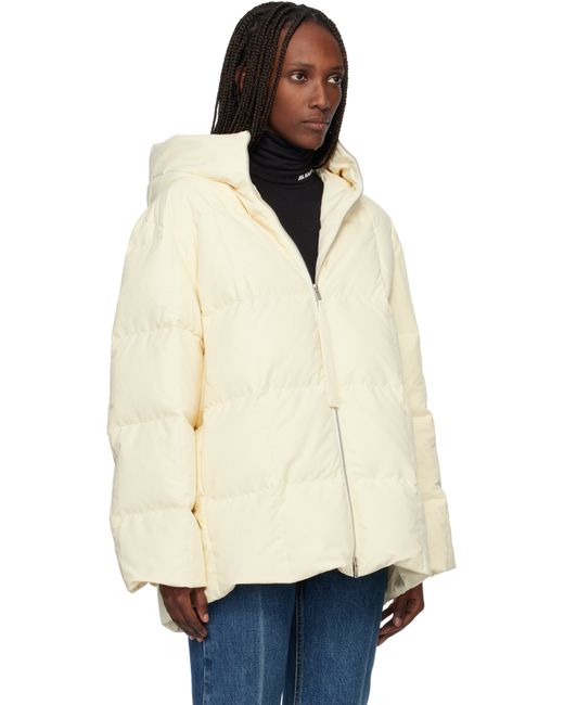 Quilted down-filled taffeta jacket. · Hooded and water-repellent · Loose-fit · Two-way zip closure · Zip pockets at waist · Dropped shoulders · Logo patch at back hem · Patch pockets at interior · Full taffeta lining · Logo-engraved silver-tone hardware Part of the Jil Sander+ collection. Supplier color: Dune