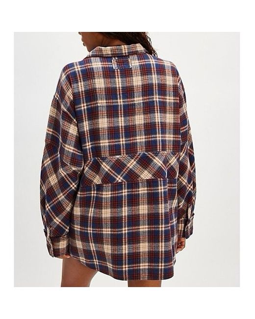 Free People Wind River Plaid Pullover Soft Zip Pockets. Features: Soft cotton flannel, plaid print all over, collared-neckline with quarter-zip closure, snap-button pockets at front, drop-shoulder sleeves with cuffs, defined seam detailing.