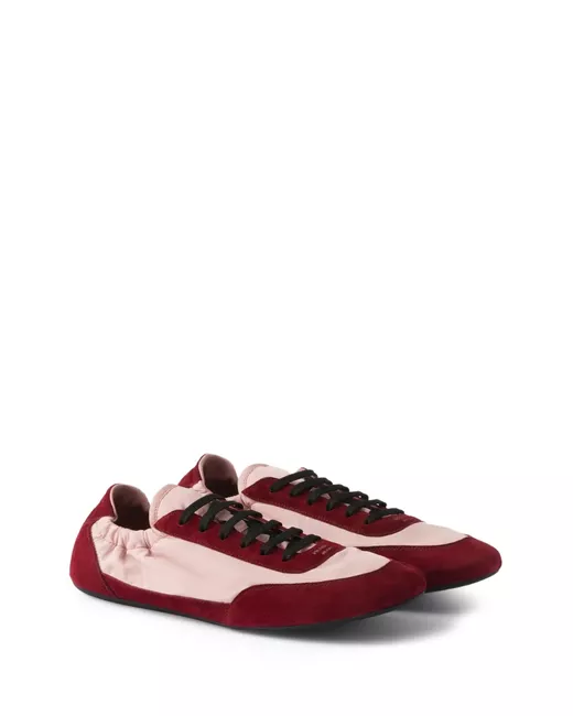 pink suede panelling nylon panelling lace-up fastening rubber sole geometric tread pattern