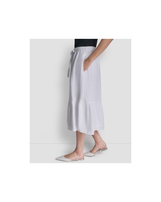 Bring timeless style into rotation with this Dkny linen skirt, featuring an easy pull-on construction for comfort. The A-line cut adds balance, while two front pockets deliver both utility and everyday function.