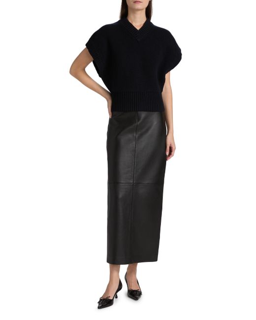 A.L.C.'s Samson sweater features a shrunken silhouette and is crafted from superfine wool. This structured piece features a crewneck and refined rib-knit trim. V-Neck Short sleeves Pulls over 100% wool Dry Clean Imported SIZE & FIT About 22" from shoulder to hem Model measurements: 5'10" tall Model is wearing a US size Small ABOUT THE BRAND A born and raised New Yorker, founder Andrea Lieberman kickstarted her fashion career as a celebrity stylist, responsible for some of the most notable A-list red carpet appearances. She launched her line in 2009, based on her experience in making women feel powerful and confident. Her collections repeatedly feature modern tailoring, separates constructed in clean lines and the occasional splash of vibrant colors and patterns. Contemporary Sportswear - Workshop > A.l.c. > Saks Fifth Avenue. A.L.C.. Color: Navy. Size: XS.